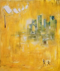That feeling of wanting to flee brought about the idea of this painting. I wanted it to come across mostly as an abstract with a vibrancy and rawness. If the image were music, it would be free jazz.
