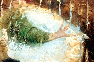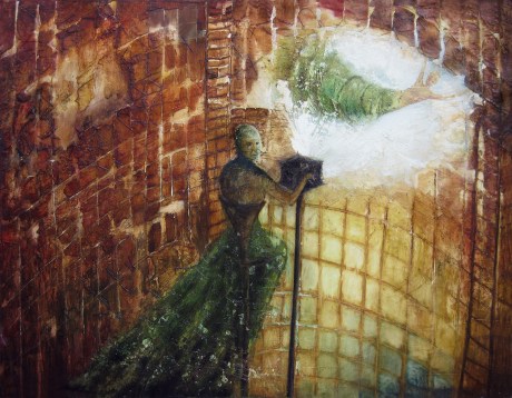 The darkness surrounds the paintings as much as the light, but it is the light that lets you enter further. When painting, I feel as though I’m trying to get through slabs of concrete, yet the challenge is satisfying and it keeps me going.