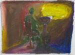 It seems as though when working, I always look at the image as if it were something in the past, something you know only partly of, but I think that the paintings come out with a sense of future as well. The sketches are of a being called an opperatant who is learning about the end of one’s life and the beginning of another.