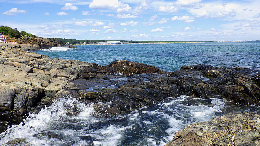 Going under at Little Beach Lighthouse, Ogunquit, Maine
