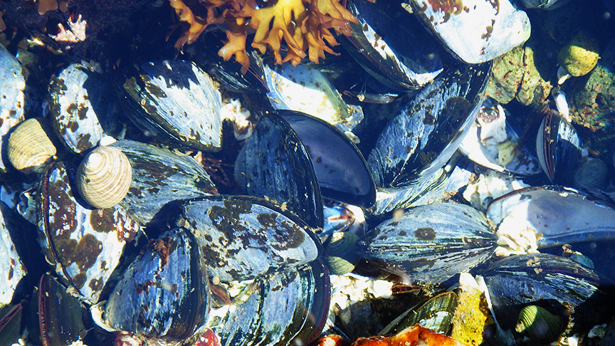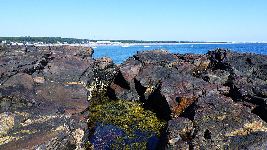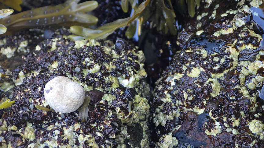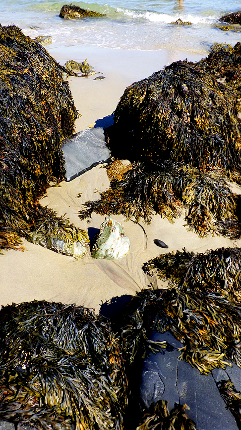 The horse shoe crab would roll itself up and let the tide take it in. Then, it would lay flat once it moved up the shore and near some rocks. Here is a link to their fascinating lives: Horse Shoe Crab