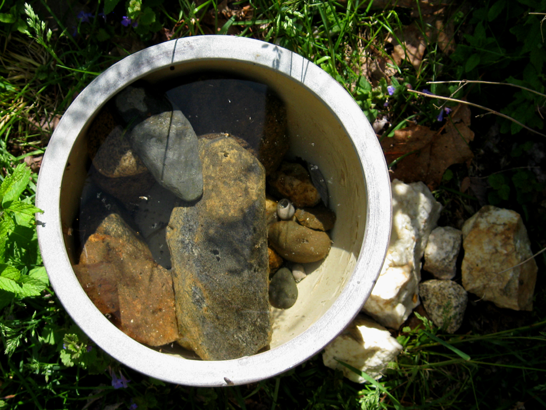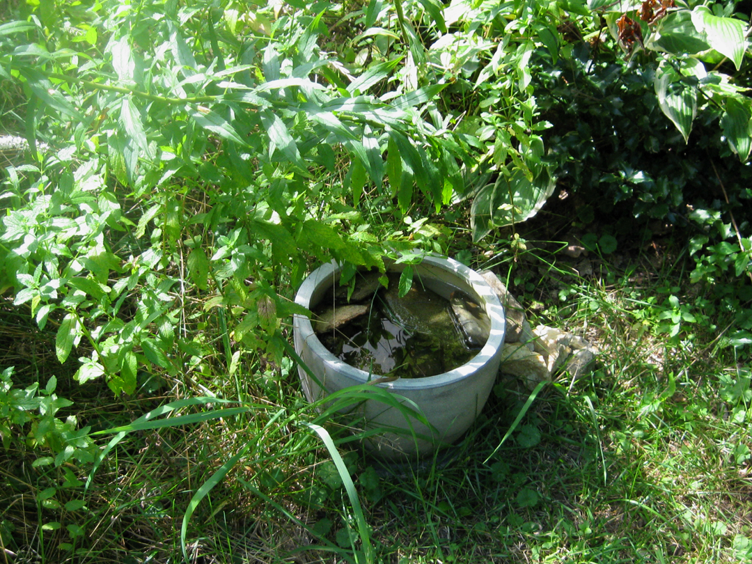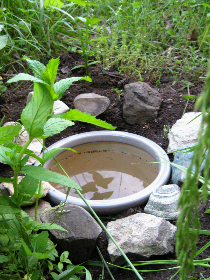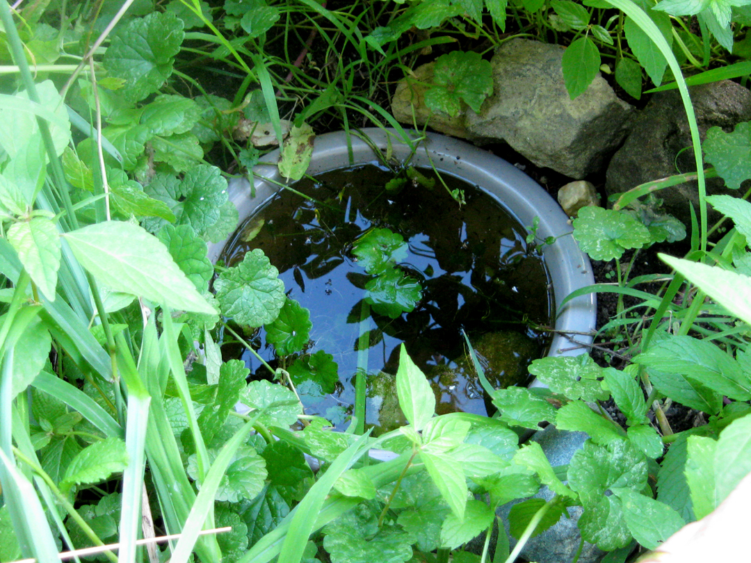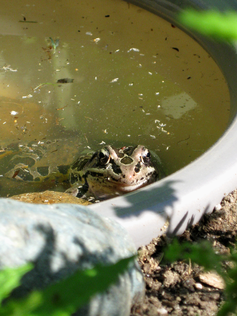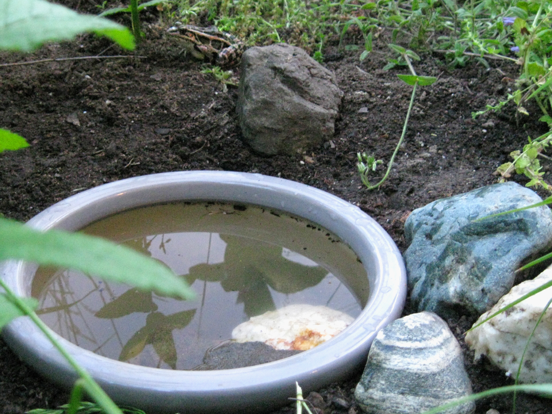I placed a pot, flush with the soil, for a make shift frog pond.