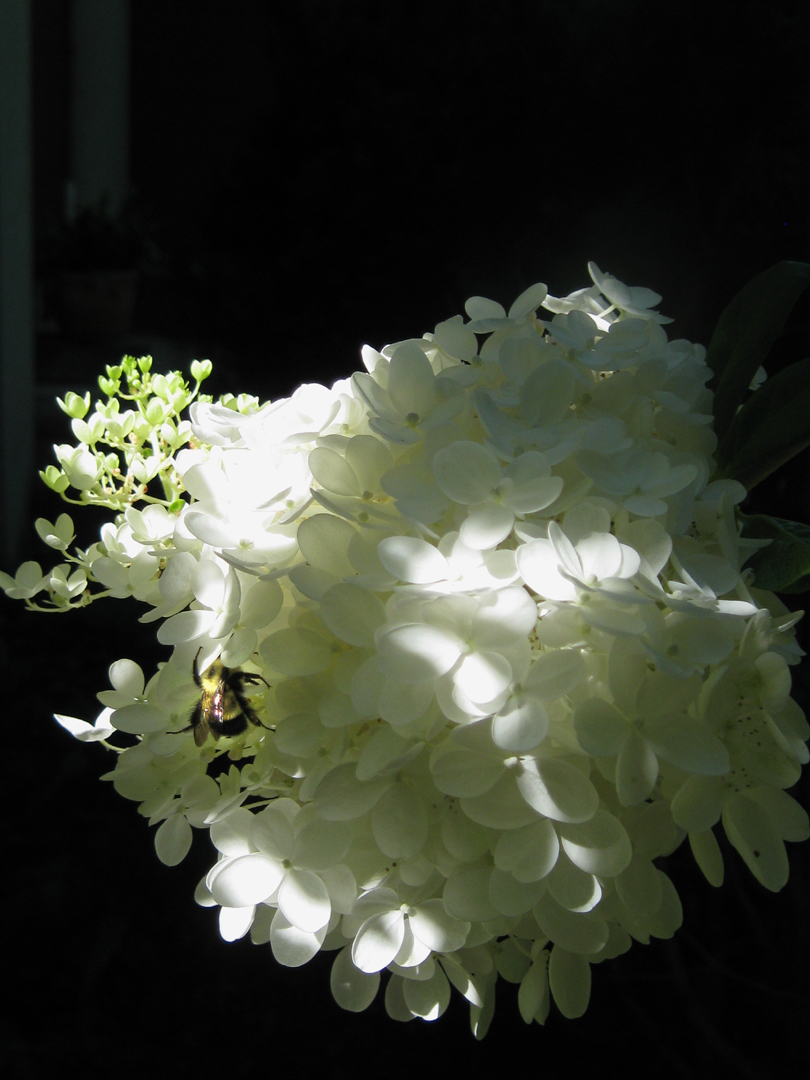 The image below was taken in the summer of 2013 of the bumble bee partaking in the hydrangea bush, their favorite this time of year.
