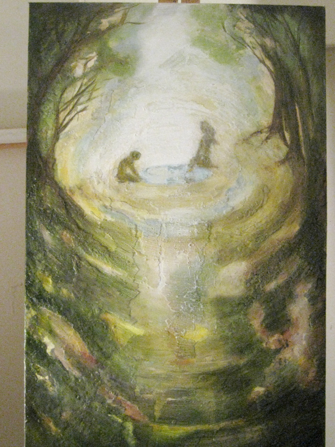 The idea for this painting came as vision over the course of a few years. The intent was strong and I felt it had to be drawn out on canvas.