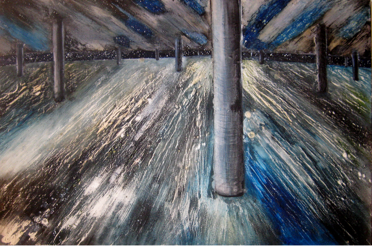 The title and the painting itself may not be finished. I’ll be adding a thick layer of high gloss polymer to the surface, to enhance the shine of the piece. I wanted to make the stars glow in vivid white, so I used gesso on top of the oils and wax. The perspective diminished a bit with the addition of black. At one point, the idea turned from darkness entering a room and taking over the light, to the whole room falling away, letting space enter with spots of light. The idea wasn’t really about darkness being evil, but that it is, I imagine, where every thought begins, a place of pure potential. When painting this scene, I have come to realize that the task of making darkness enter light is impossible. Coincidently, it seems light always ends up consuming the darkness. From the words of an anonymous Russian sage,”There are no resounding victories of the dark side.”