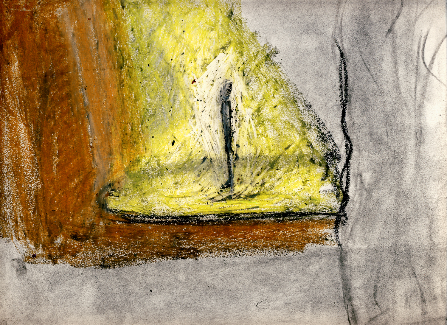 During this retrograde period I have been going over completed and undone sketches of the past. With some of them, like this one, there was a very simple idea that grew out of itself. The ideas for Stage were about searching for an emotional light, trying to capture the feeling of being alone and all the power within that. Finished in 2005.