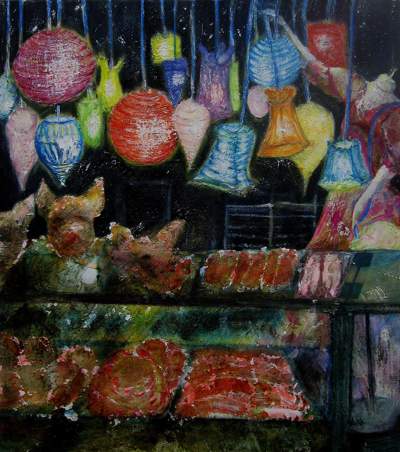 She lends her magic in the neighboring meat shop by lighting Chinese lanterns .
