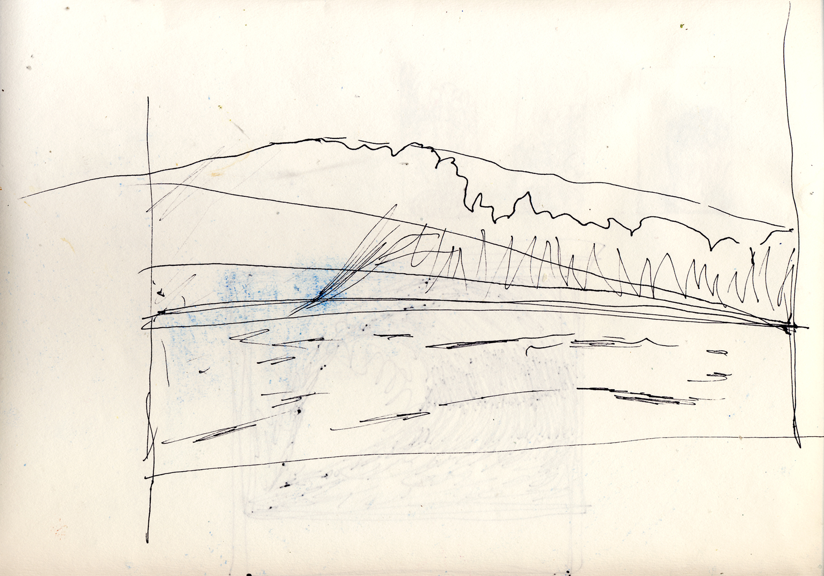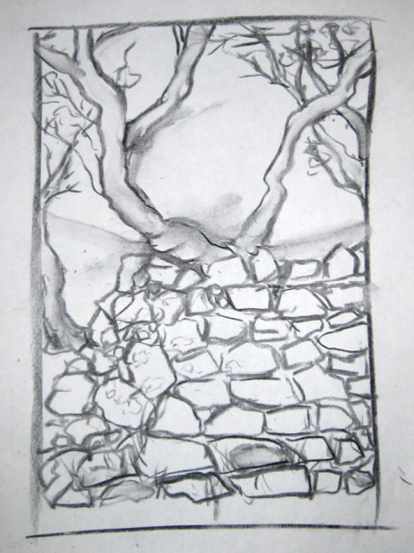Sketch in turpentine wash on acrylic primed cotton canvas.