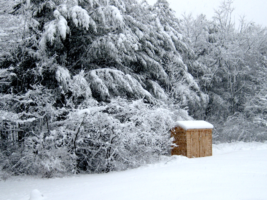 The snow lantern or snölykta was made the day after a storm which left us about five inches of wet snow. The next day, being sunny and in the upper thirties, was perfect for making snowballs.
